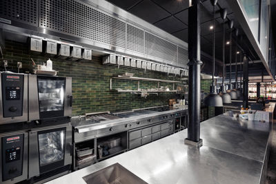 Kjøkkenhette over utstyr som avgir vanndamp og varme, f.eks. kokekar og oppvaskmaskiner.
