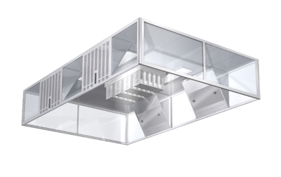 Filtreringssystem med UV-lys og ozon for eliminering av fett og luktreduksjon.